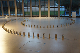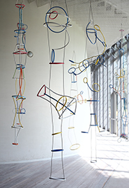 I have started using an electronic cable called F cable. It is very light unlike other materials commonly used for sculptures. I can give it some movements depending on how I put it together. I like how playfully it moves even when it is put still.