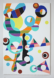 主な作品のテーマは耳です。たくさんの情報社会の中、情報の海に溺れてしまいそうに感じています。そして孤立感がいっぱいです。このような自分の状況を耳のドローイングや彫刻にしてあらわしています。音楽は私を楽しませてくれ安堵させてくれる妙薬です。その音楽をオイルパステルを使って表現しています。