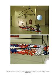 His most recent Solo performance and installation exhibition was executed in 2007, entitled “Surrealistic Conception” Faculty of Fine Arts, Chiangmai University, Thailand 2004 Solo Art Exhibition “Deconstruction” after the Condolence to the Authorities Project. Faculty of FineArts,Chiangmai University, Thailand/2001.