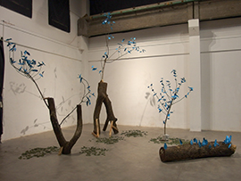 作品は石、苔、木、土などの自然素材を多く使い、その作品からは自然信仰や自然の循環、生と死などを感じさせる作品を制作しています。これらは普段は目に見えないものであり、知っているはずなのに無意識の奥へと追いやられています。
