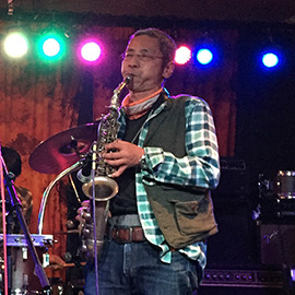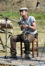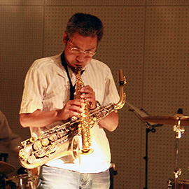 1957年広島県生まれ。18歳の時アルトサックスを手にし、故井上敬三氏に師事。1992年、ロシアのジャズフェスティバルにて劇的デビュー。フリージャズの流れを汲むが、根っからのインプロヴァイザーである。国内外のアーティストとセッションをし、各地を飛び回り自らの音世界を追求し続けている。美術、演劇、舞踏、映像など、あらゆる表現媒体と共演可能で、その活躍ぶりは幅広い。彼の独特な音色と間合いのセンスは、自然を愛し、常にインスピレーションを得るところから派生している。どこまでも有機的で伸びやかな彼の音は、その場所の空気、風や雨音など自然たちと絡み合い、独特の哀感を奏で空間を一変させる。時にダイナミックに荒れ狂い、そして微かな息のように絞り出される音、音で絵を描くがごとく色彩豊かな表現が聴く者を想像の世界に誘い、音楽でありながら同時にアート作品を標榜しているようにも感じられる。海外からのオファーも相次いでおり、今年1月のイギリスでの演奏が順次デジタル配信され始めている。