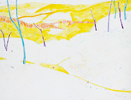 生きているものの生命力と、大自然の中にいるようなすがすがしさとが共存するような表現はできないかと考えています。最近の作品は雪山が主な主題で綿布に積層に重ねたアクリル絵の具を削り表層に表すことで、現実的には冷たい雪の風景としての暖かみや、雪に閉ざされた中で春を待ち、春に備える木々の力強さなどを絵の中で表現したいと考えています。